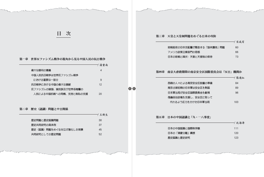 第五章“日本的中国认识与‘九一八事变’”,由吉林大学教授沈海涛执笔。该章认为,历史认识问题始终是横亘在中日关系中的一道难解之题。近代中日关系史几乎是以日本不断地对中国进行帝国主义侵略而贯穿始终的。如何认识和解读近代中日关系史上的日本对华侵略,始终是中日两国在历史认识问题上的差异与争论的关键所在。为了破解中日历史认识问题这道难题,首要的任务是正本清源,以客观的历史事实为依据,探寻日本近代对华侵略的肇始因素、侵华政策与行动真相。